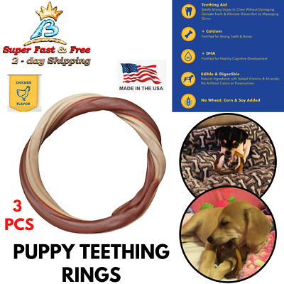 Dog Teething Rings Puppy Chew Treat 3 Pieces Chicken Teether Toy For Pain Relief Ebay